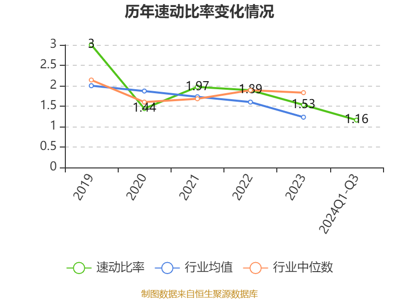2024年前三季度,公司流动比率为1.57,速动比率为1.16。