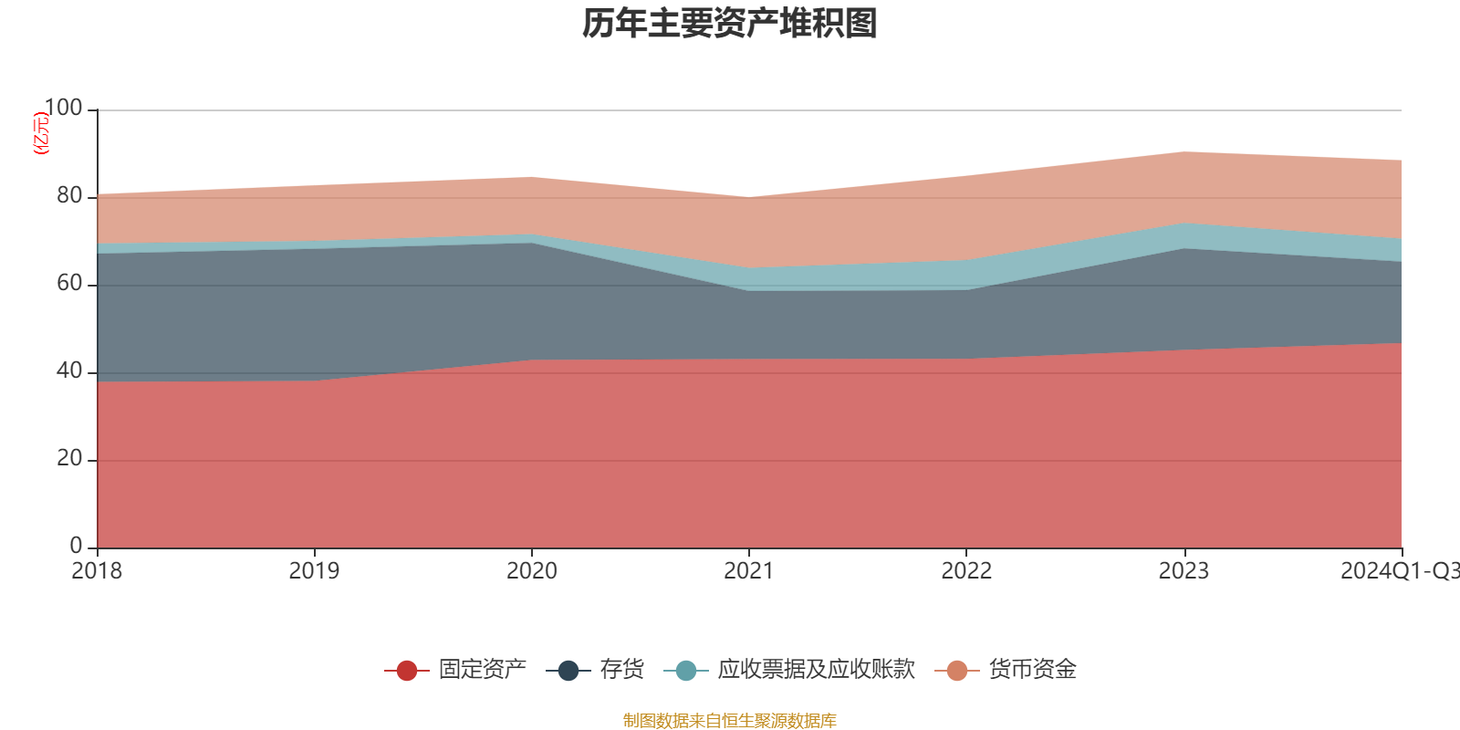 资产重大变化方面,截至2024年三季度末,公司存货较上年末减少19.75%,占公司总资产比重下降4.35个百分点;固定资产较上年末增加3.51%,占公司总资产比重上升2.14个百分点;货币资金较上年末增加9.95%,占公司总资产比重上升1.83个百分点;应收款项融资较上年末增加188.24%,占公司总资产比重上升1.17个百分点。