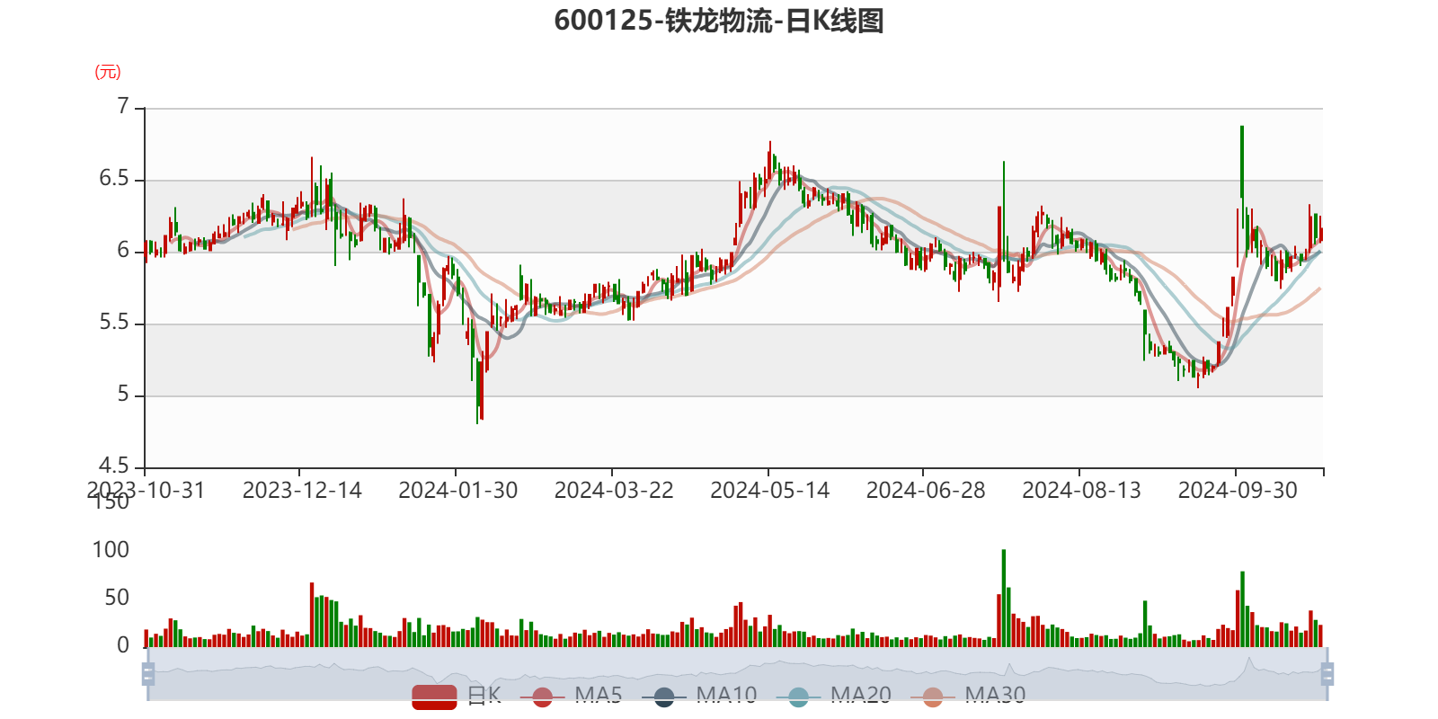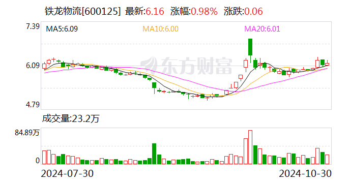 以10月30日收盘价计算,铁龙物流目前市盈率(TTM)约为19.59倍,市净率(LF)约1.1倍,市销率(TTM)约0.57倍。