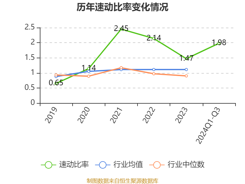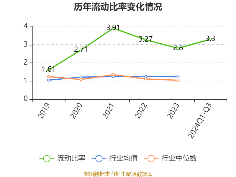 2024年前三季度,公司流动比率为3.3,速动比率为1.98。