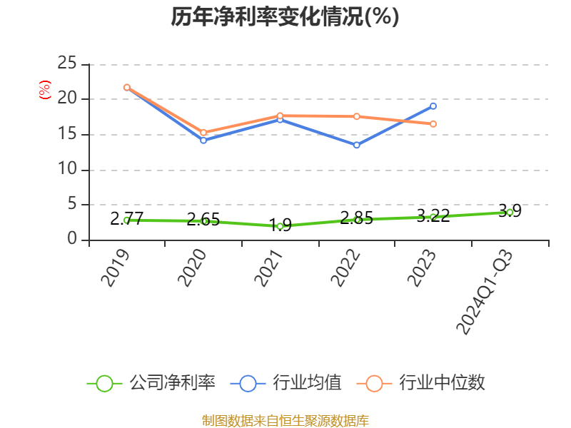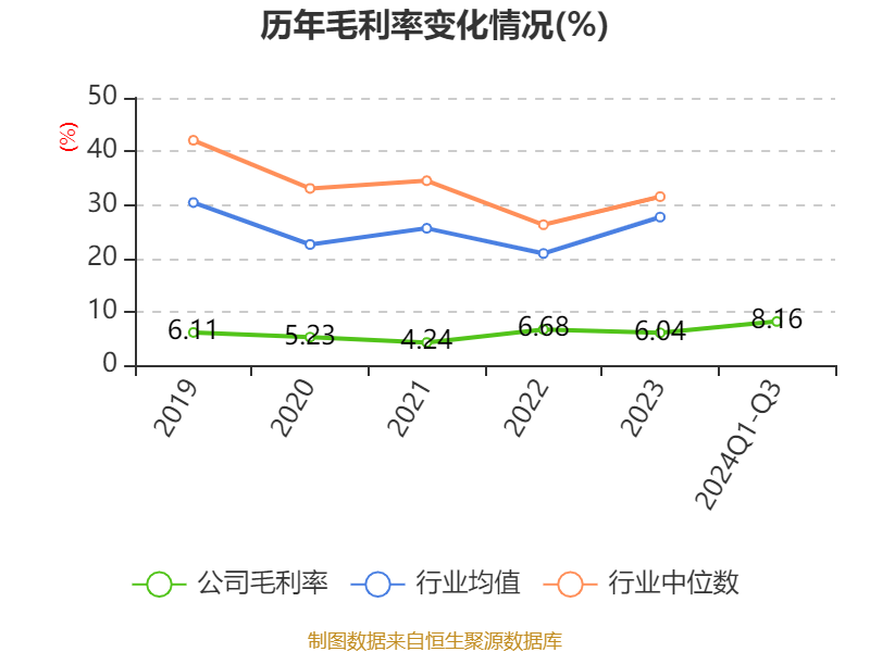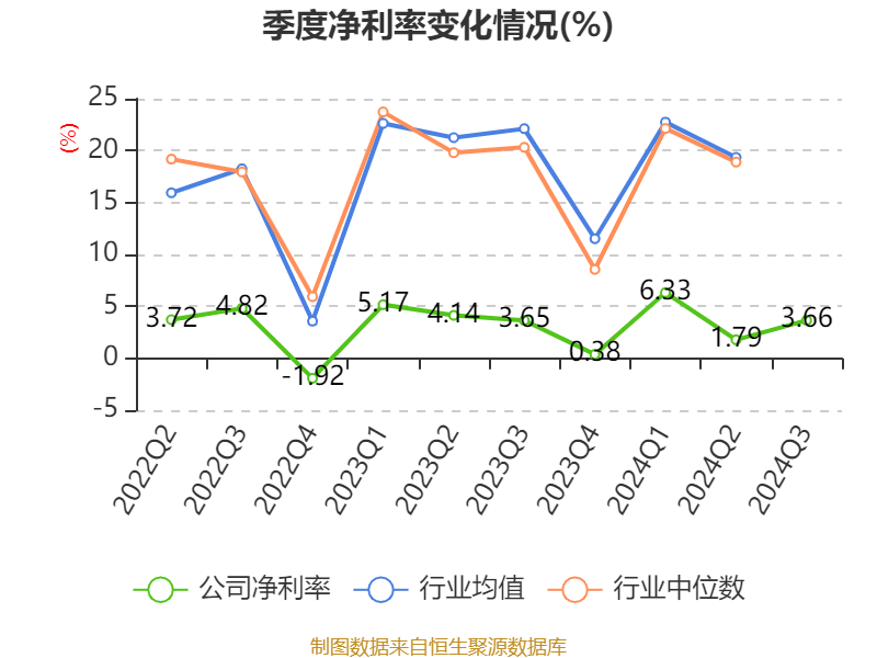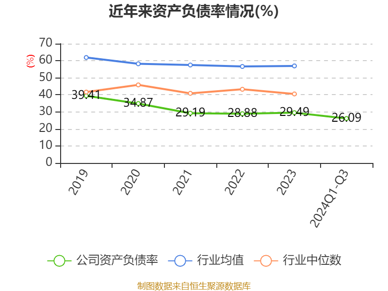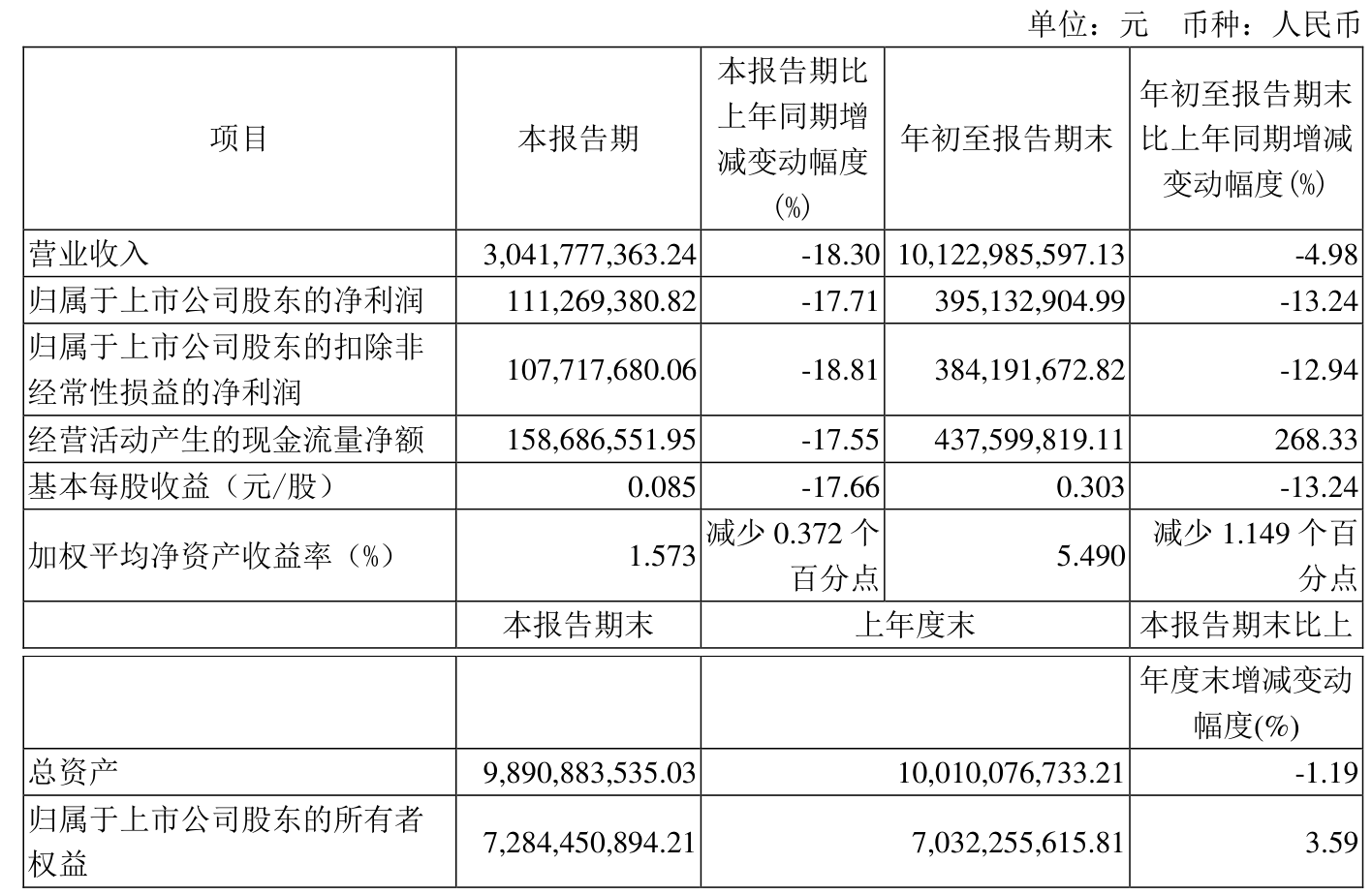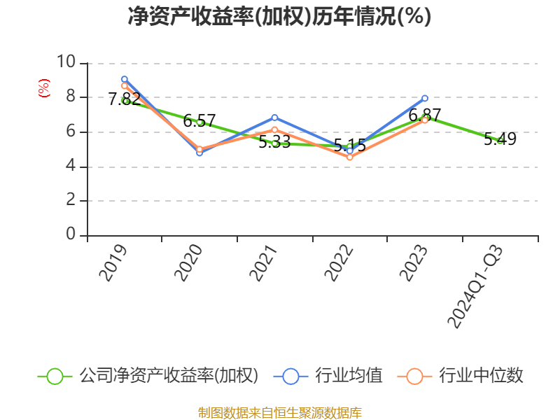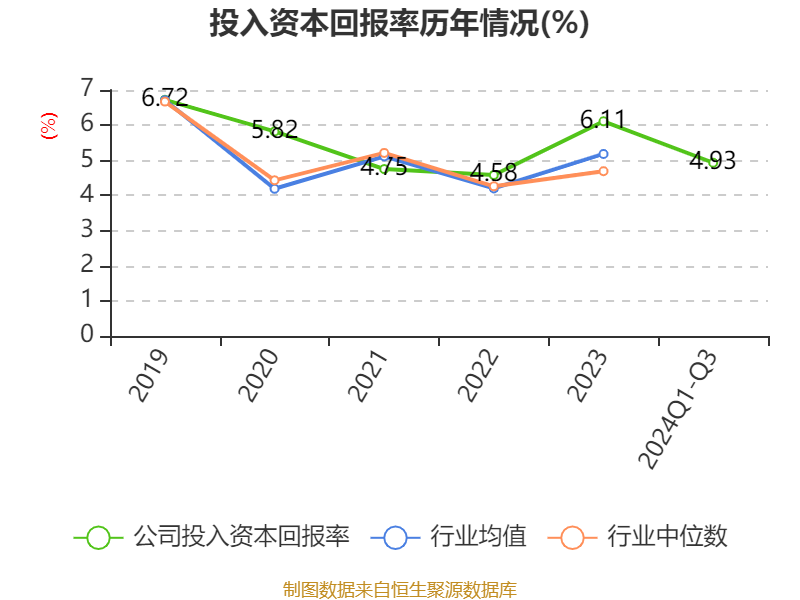 盈利能力方面, 2024年前三季度公司加权平均净资产收益率为5.49%,同比下降1.15个百分点。公司2024年前三季度投入资本回报率为4.93%,较上年同期下降0.97个百分点。