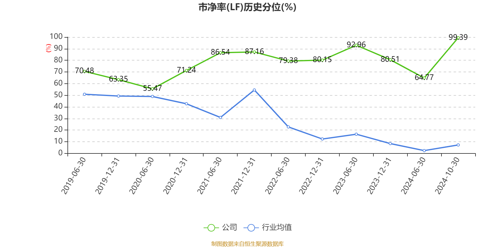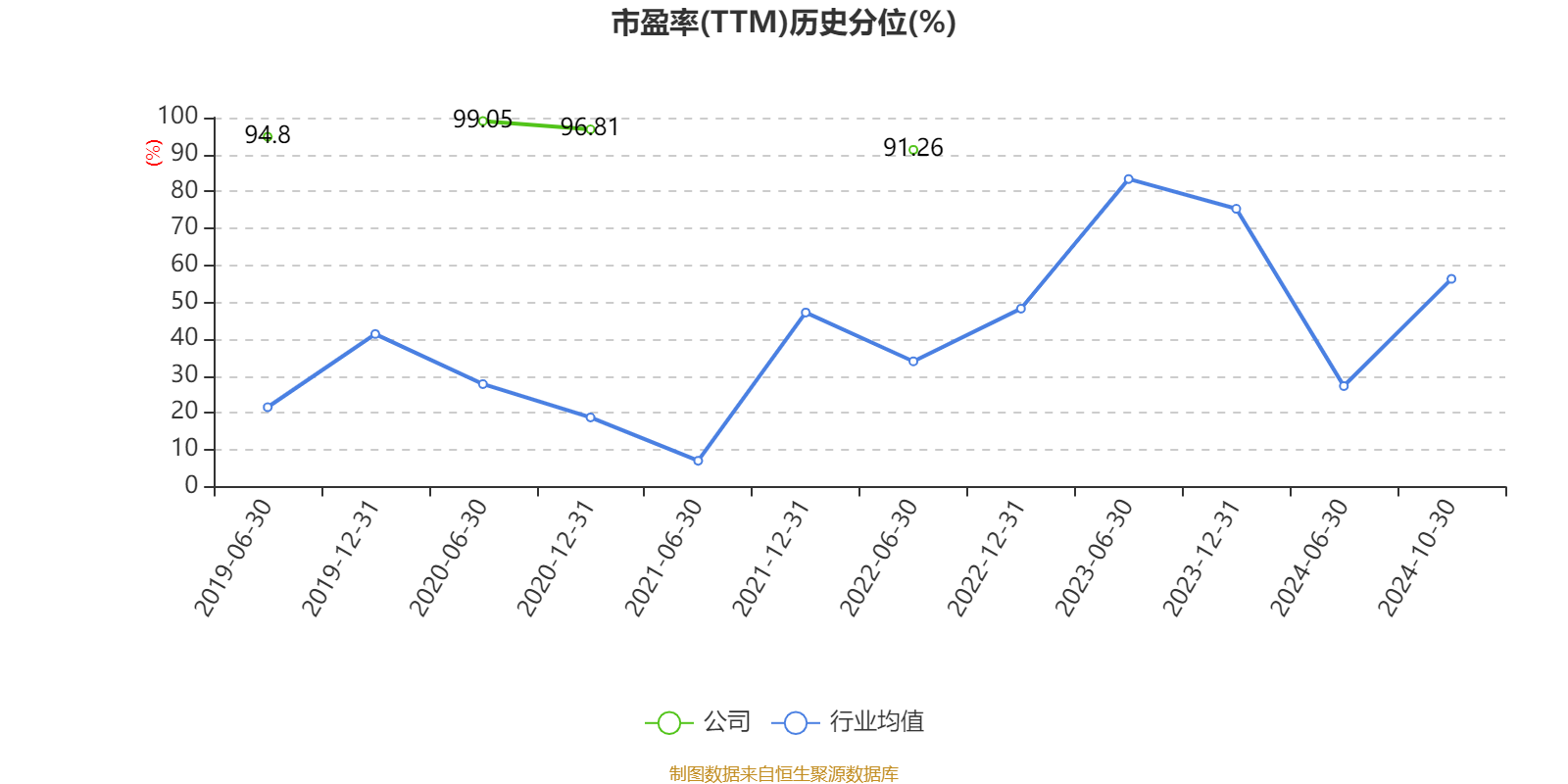 市盈率、市净率为负时,不显示当期分位数,会导致折线图中断。
