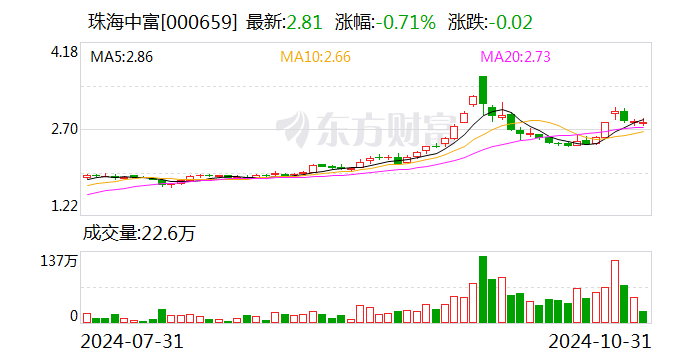 以10月30日收盘价计算,珠海中富目前市盈率(TTM)约为-27.28倍,市净率(LF)约12.21倍,市销率(TTM)约3.59倍。