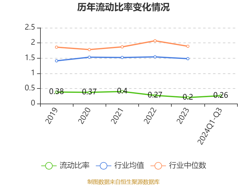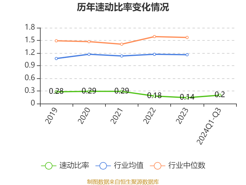 2024年前三季度,公司流动比率为0.26,速动比率为0.2。