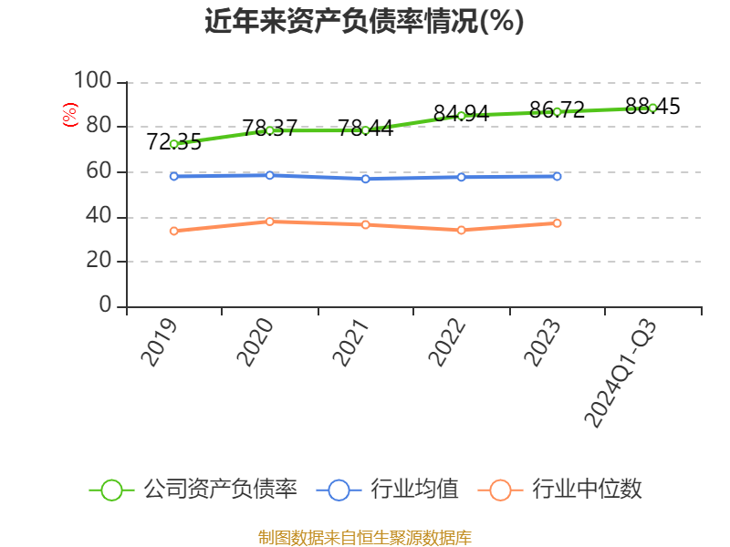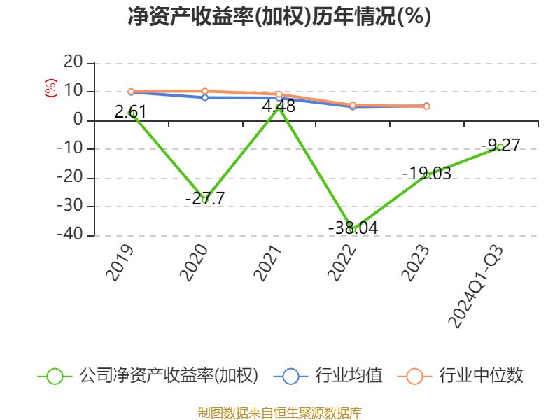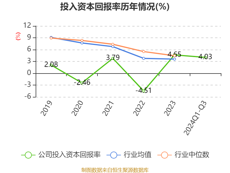 盈利能力方面, 2024年前三季度公司加权平均净资产收益率为-9.27%,同比下降17.38个百分点。公司2024年前三季度投入资本回报率为4.03%,较上年同期下降0.46个百分点。