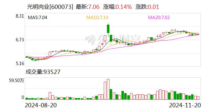 2024年前三季度,光明肉业实现收入163.84亿元,归母净利润3.81亿元。文章来源:财中社原标题:光明肉业拟向光明农牧提供1.02亿元财务资助