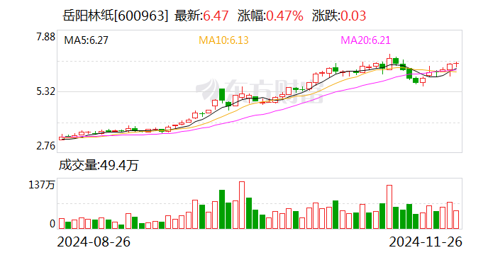 截至发稿,岳阳林纸市值为114亿元。