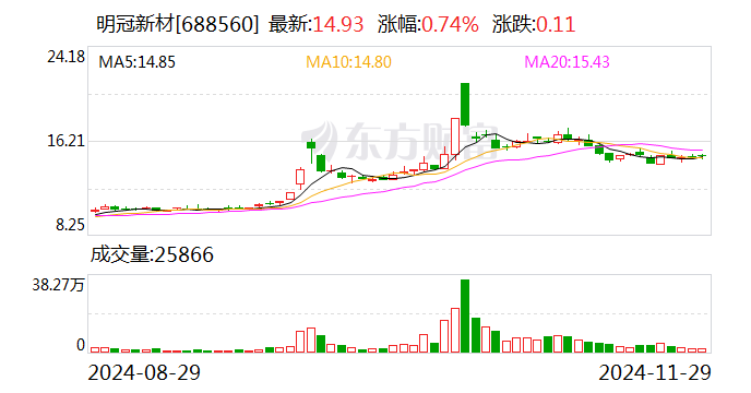 明冠新材(688560.SH)11月29日在投资者互动平台表示, 公司的锂电池铝塑膜客户有赣峰电池、孚能科技、清陶能源、骆驼股份、超威电池、GY电池等,已在固态电池客户处获得应用。未来考虑动力电池续航里程和电池安全问题,固态电池前景可佳,升级替代市场广阔。
