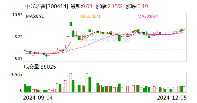 2024年前三季度,中光防雷实现收入3.11亿元,归母净利润387万元。