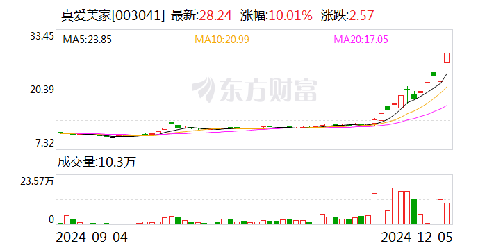 财中社12月5日电真爱美家(003041)发布股票交易异常波动暨严重异常波动公告。根据公告,公司股票在2024年12月4日和12月5日连续两个交易日的收盘价格涨幅偏离值累计超过20%,属于股票异常波动情况。同时,公司股票在过去10个交易日内出现4次同向异常波动,构成股票严重异常波动。