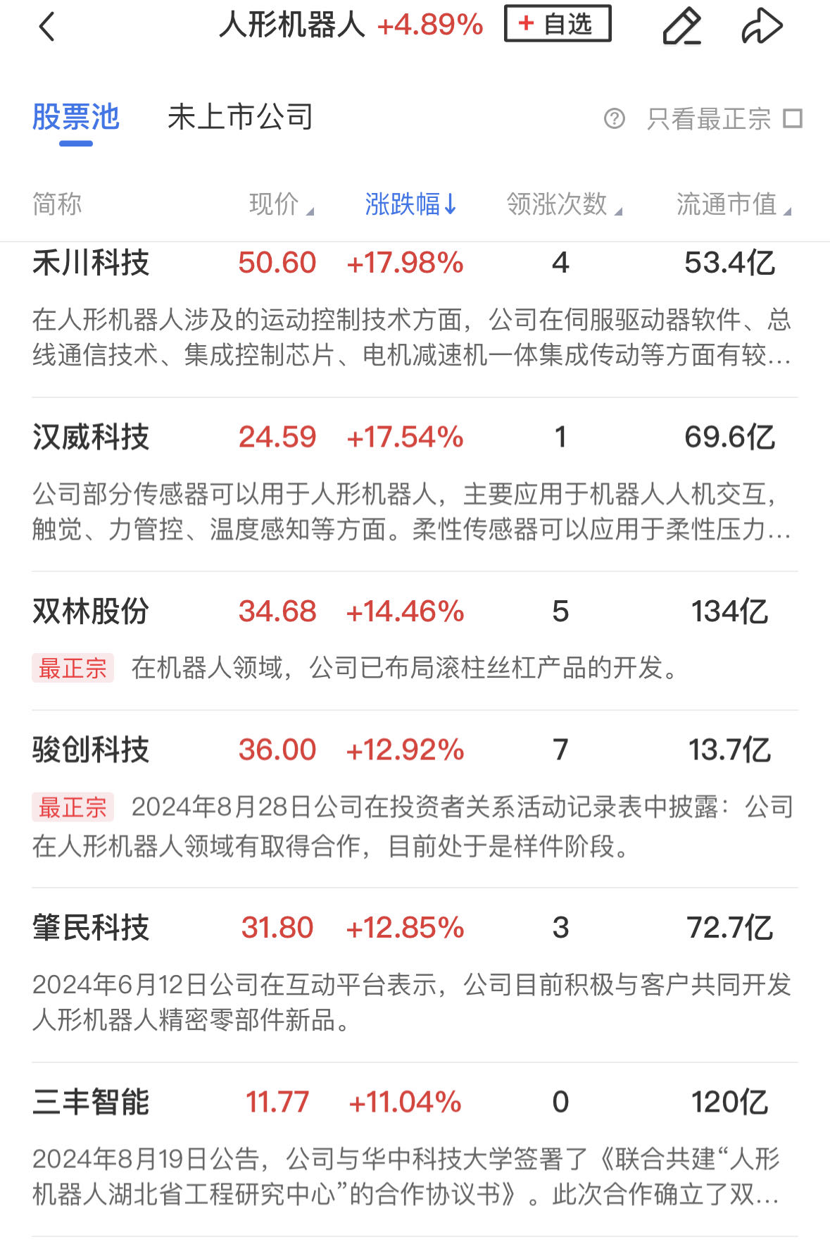 机器人概念股延续强势,中研股份、鸣志电器、柯力传感、爱仕达、奋达科技、泰尔股份等个股涨停。