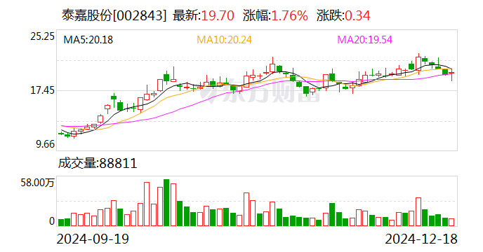 2024年前三季度,泰嘉股份实现收入13.16亿元,归母净利润6602万元。