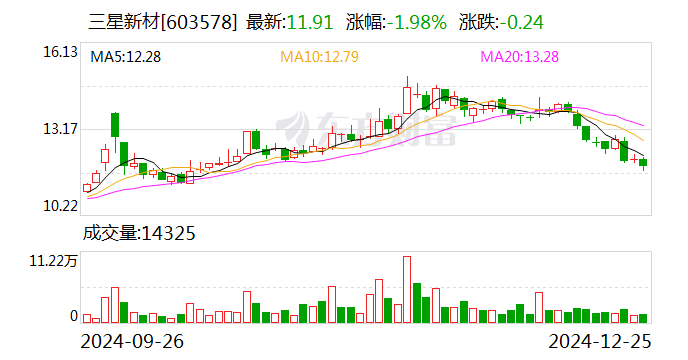 2024年前三季度,三星新材实现收入7.00亿元,归母净利润2803万元。