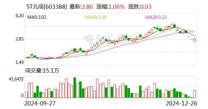 财中社12月26日电ST元成(维权)(603388)发布关于无法按期归还募集资金的公告。公司使用闲置募集资金临时补充流动资金的1500万元和1亿元分别于2024年9月24日和2024年11月8日到期,但尚未足额归还。此外,公司于2024年12月26日到期的6000万元闲置募集资金也因相关工程款回收不及预期等原因,暂时无法归还,导致目前流动资金紧张。截至目前,公司尚未归还的闲置募集资金累计达到1.72亿元。