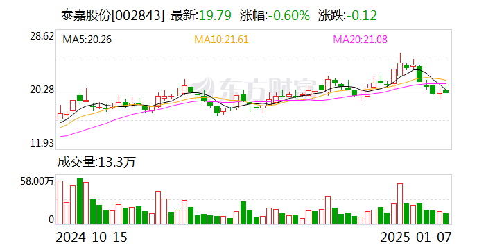 中国网财经1月7日讯国内带锯条龙头泰嘉股份泰嘉股份(002843.SZ)1月6日晚间披露2024年度业绩预告,预计2024年实现归母净利润3900万元-5500万元,同比下降58.67%-70.69%;扣除非经常性损益后的净利润3500万元–5100万元,同比下降54.42%-68.72%。