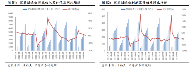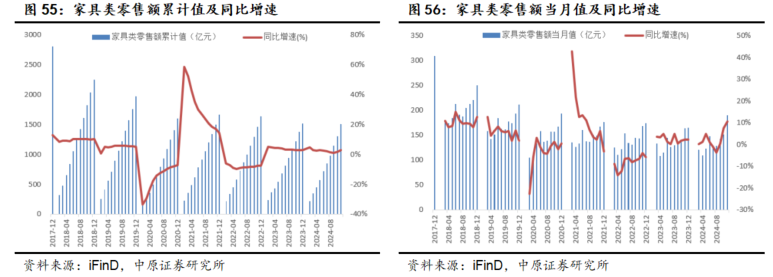 家具类零售额当月及累计增速持续提升,消费品以旧换新政策持续显效,消费需求进一步释放,家具类零售额呈现持续回升。2024年11月家具类消费品零售额189.8亿元,同比增长10.5%,增速较10月提高3.1个百分点;1-11月家具类消费品零售总额1504.9亿元,同比增长2.9%,增速较10月提高了1个百分点。