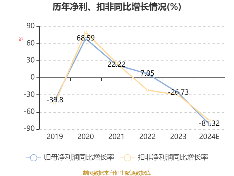 据公告,公司业绩变动原因为, 2024年受行业产能过剩,养殖企业盈利水平下降,原材料价格持续波动,市场竞争加剧导致产品价格大幅下降等综合因素的影响,以及2023年处置长期股权投资产生投资收益14356万元,而2024年无相关资产处置事项。因此,2024年度归属于上市公司股东的净利润同比有所下降。
