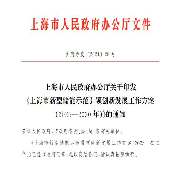 上海市印发《新型储能示范引领创新发展工作方案》,超前布局氢基能源