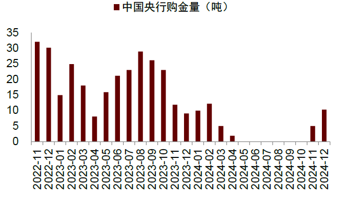 图表8:2024年11月,中国央行重启购金,11、12月分别购金5吨、10吨