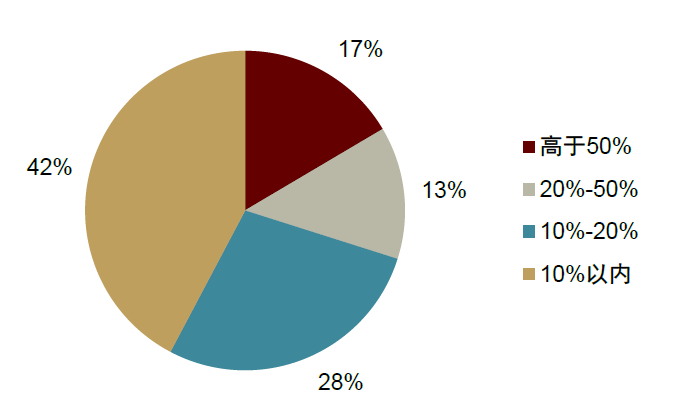 图表10:全球97个国家或地区披露的黄金储备占央行储备比例的分布结构(截至2024年底)