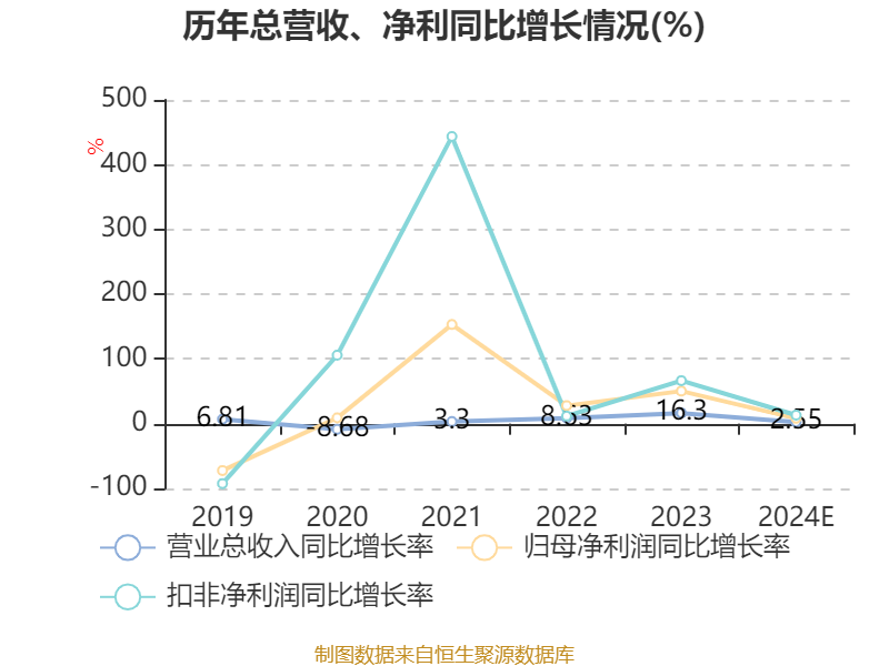 数据显示,2024年公司加权平均净资产收益率为13.9%,较上年同期下降2.38个百分点。