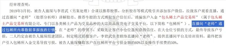 2019年至2020年,包头稀土产品交易所(下称“稀交所”)卷入多起“杀猪盘”事件,后被《新京报》《内蒙古晨报》等媒体曝光。福建省厦门市海沧区人民法院2020年更有判决认定,有关团伙联合稀交所相关人员合谋诈骗,赚取客户在稀交所平台亏损金额的60%以及操作手续费的50%。