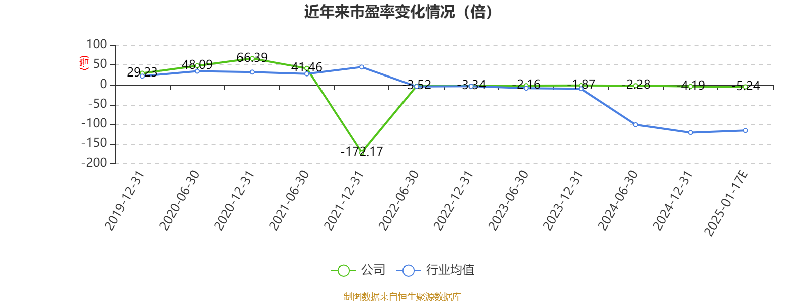 中证智能财讯宝鹰股份(002047)1月18日早间披露2024年度业绩预告,预计2024年归母净利润亏损6.33亿元至8.30亿元,上年同期亏损2307.13万元;扣非净利润亏损5.80亿元至7.77亿元,上年同期亏损2312.37万元;基本每股收益-0.42元/股至-0.55元/股。以1月17日收盘价计算,宝鹰股份目前市盈率(TTM)约为-4.53倍至-5.94倍,市净率(LF)约-19.66倍,市销率(TTM)约1.18倍。