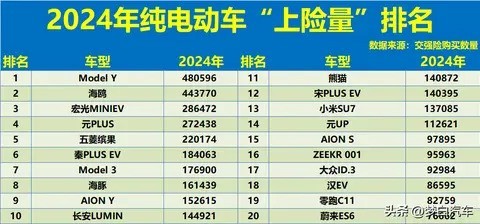 其中,比亚迪汽车独占鳌头,旗下6款车型年度“上险量”都达到了10万以上。特斯拉旗下的Model Y和Model 3分别卫冕SUV和轿车第一,并进入了前15名。五菱汽车旗下的宏光MINIEV和缤果也全部入榜前五。
