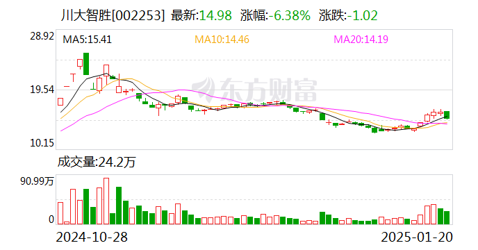中证智能财讯川大智胜(002253)1月20日晚间披露2024年度业绩预告,预计2024年实现营业收入1.8亿元至2.3亿元;归母净利润亏损4900万元至6300万元,上年同期亏损1.72亿元;扣非净利润亏损6000万元至7800万元,上年同期亏损1.87亿元。以1月20日收盘价计算,川大智胜目前市盈率(TTM)约为-53.65倍至-68.98倍,市净率(LF)约2.87倍,市销率(TTM)约16.49倍。