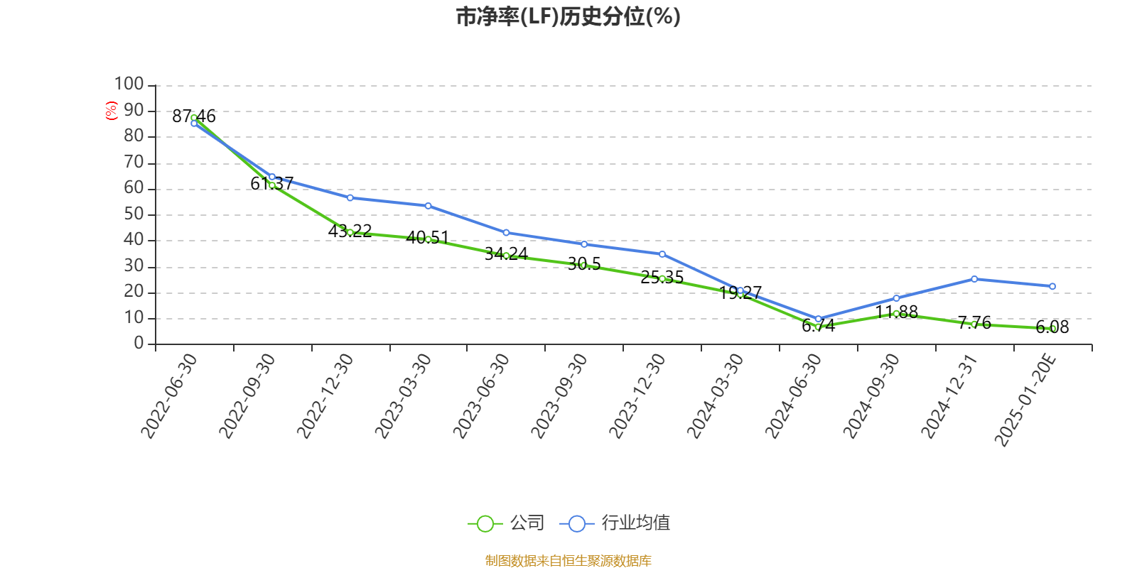 市盈率、市净率为负时,不显示当期分位数,会导致折线图中断。