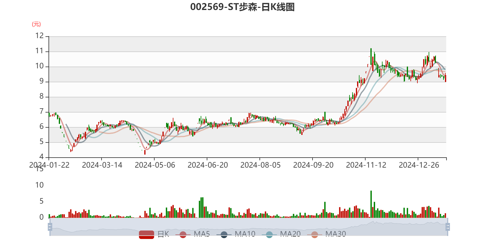 中证智能财讯ST步森(维权)(002569)1月20日晚间披露2024年度业绩预告,预计2024年实现营业收入1.05亿元至1.55亿元;归母净利润亏损3500万元至6800万元,上年同期亏损6699.83万元;扣非净利润亏损3500万元至6800万元,上年同期亏损5110.4万元;基本每股收益-0.24元/股至-0.47元/股。以1月20日收盘价计算,ST步森目前市盈率(TTM)约为-19.95倍至-38.76倍,市净率(LF)约17.18倍,市销率(TTM)约10.44倍。