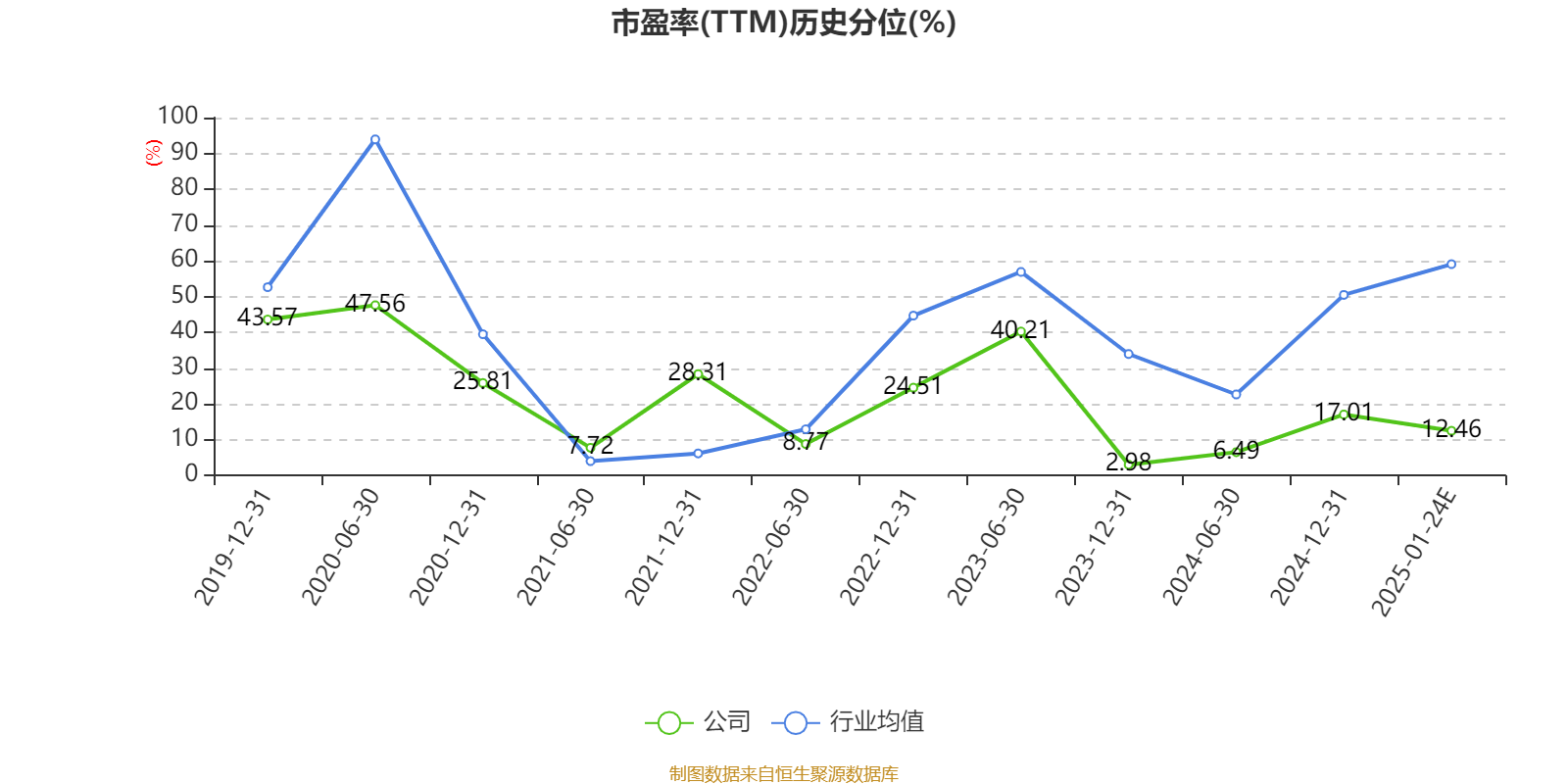 以本次披露业绩预告均值计算,公司近年市盈率(TTM)图如下所示: