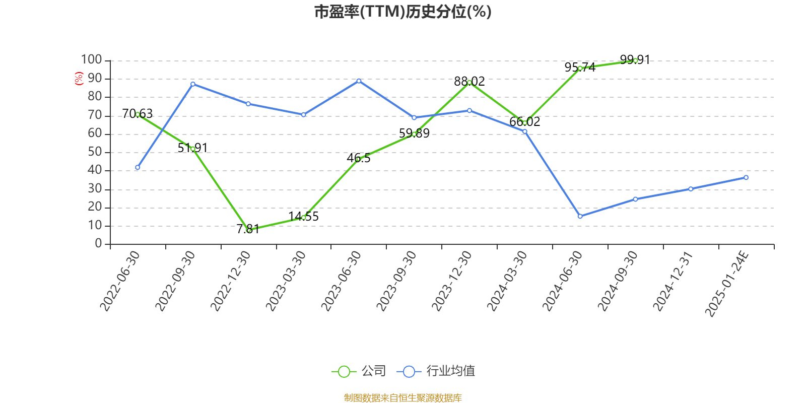 以本次披露业绩预告均值计算,公司近年市盈率(TTM)图如下所示: