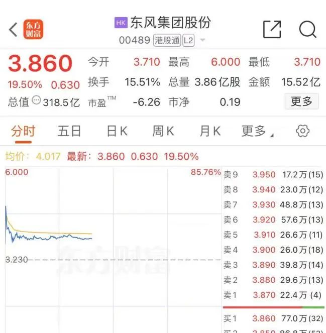 此外,港股东风集团股份盘初一度涨超85%,截至发稿,涨幅收窄至19.50%。