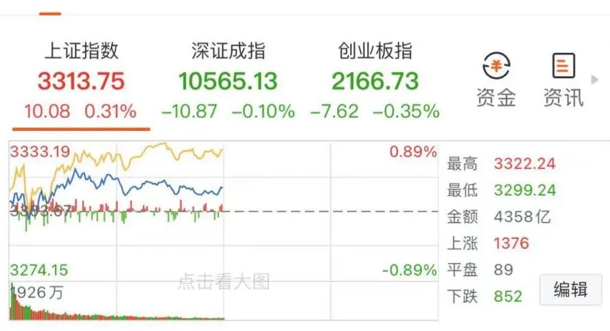 今日早盘,A股三大指数震荡分化。截至午间收盘,沪指涨0.31%,深证成指跌0.10%,创业板指跌0.35%。沪深两市半日成交额1.11万亿元,较上个交易日缩量367亿元。