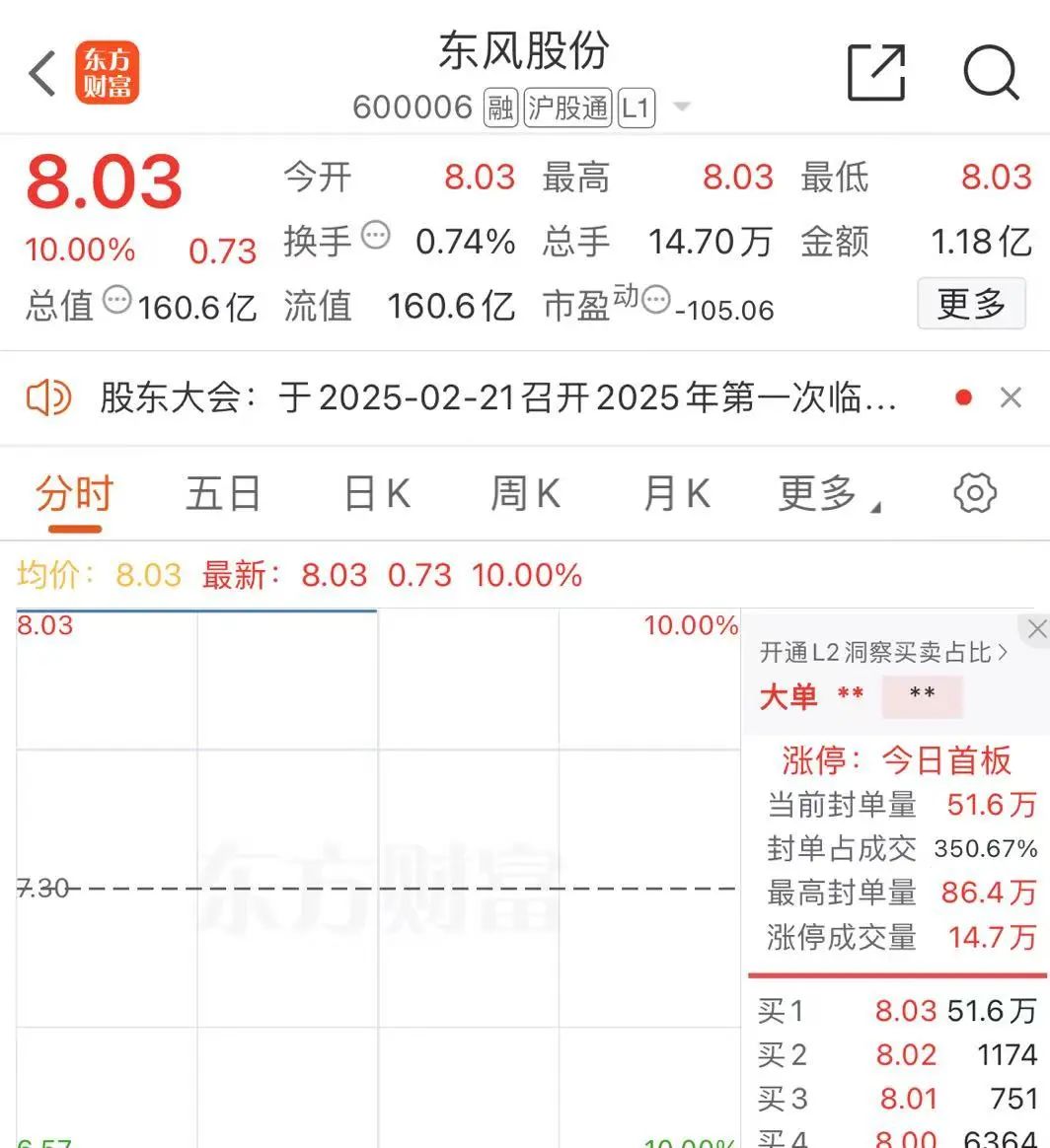 2月10日,东风系概念股集体大涨,东风股份、东风科技等多股涨停。