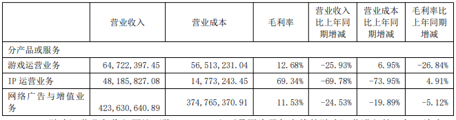 据财报数据,盛天网络主要有3大业务,分别为游戏运营、IP运营以及网络广告与增值业务。2024年上半年,上述3大业务收入分别为6472万元、4819万元、4.23亿元,毛利率分别为12.68%、69.34%、11.53%。