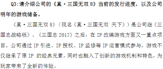 需要指出的是,盛天网络在财报中并未披露《真·三国无双天下》的开发与发行方,但根据投资者活动关系记录表,公司大概率仍以IP运营模式参与。