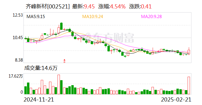 据了解,齐峰新材料股份有限公司(002521)创立于1976 年,是一家从事装饰原纸研发、生产和销售公司。装饰原纸与各种板材配套加工成各种装饰材料,广泛应用于酒店、商场、写字楼、各类娱乐文化场所、大型场馆等中高档建筑装饰装修、家居装饰公司。它是我国装饰原纸行业少数掌握高档装饰原纸核心技术的龙头企业,是科技部认定的国家新材料产业化基地骨干企业,拥有山东省科技厅认定的山东省高档装饰原纸工程技术研究中心。该公司已与美国富美家、德国克诺斯邦、中国圣象地板、全友家私等众多国内外知名品牌企业建立了长期稳定的合作关系。公司年产20万吨特种纸(一期)项目于去年8月投产。截至今年2月10日,已累计完成产量2.5万吨,产值达1.6亿元。2025年计划完成产量7.1万吨,产值约7亿元。