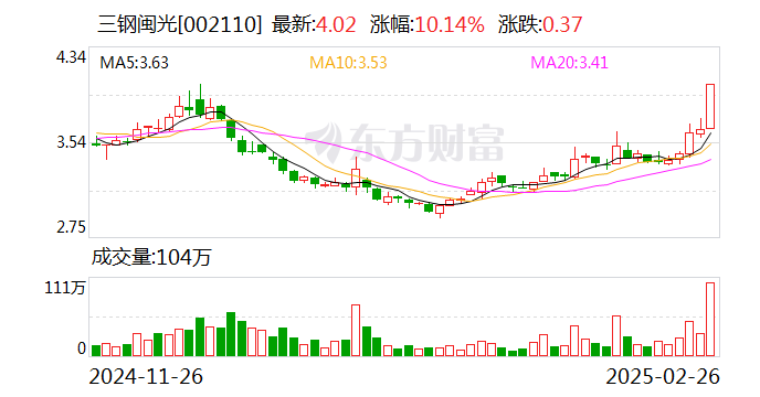 钢铁板块26日盘中大幅走高,截至发稿,三钢闽光、本钢板材、中南股份、杭钢股份、凌钢股份、八一钢铁等涨停,盛德鑫泰涨逾9%。