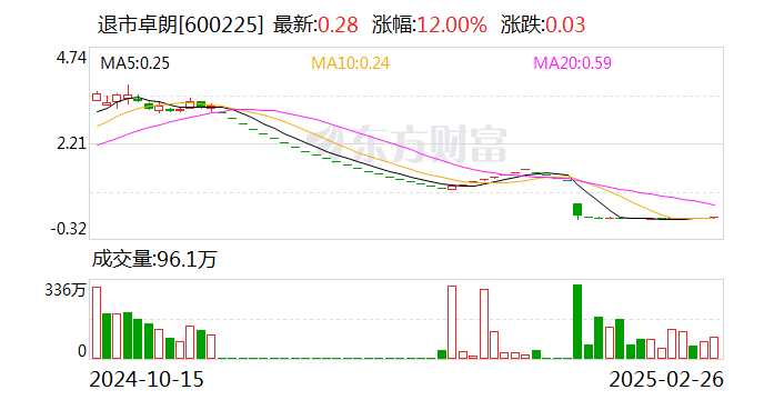 退市卓朗(维权)(600225)今日涨停,全天换手率2.82%,成交额2590.10万元,振幅16.67%。龙虎榜数据显示,营业部席位合计净卖出24.29万元。