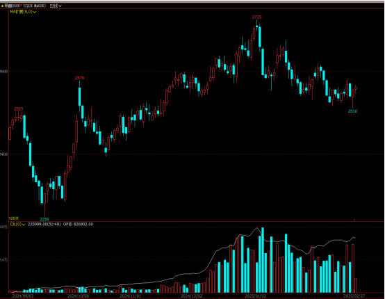 煤炭持续走弱,甲醇成本走低,煤制企业利润维持高位水平,高利润刺激下预计国内供应维持在高位水平,海外开工相对低位,但预计3月之后逐步回归,届时供应压力将逐步走高。需求端港口MTO停车,开工回落到低位水平,当前下游利润依旧偏低,整体需求提振有限。供高需弱背景下港口库存进一步走高,但港口烯烃装置利空逐步落地,需求继续大幅走弱的空间也较为有限,因此预计甲醇单边持续下跌的可能性较小,但向上也缺乏驱动。
