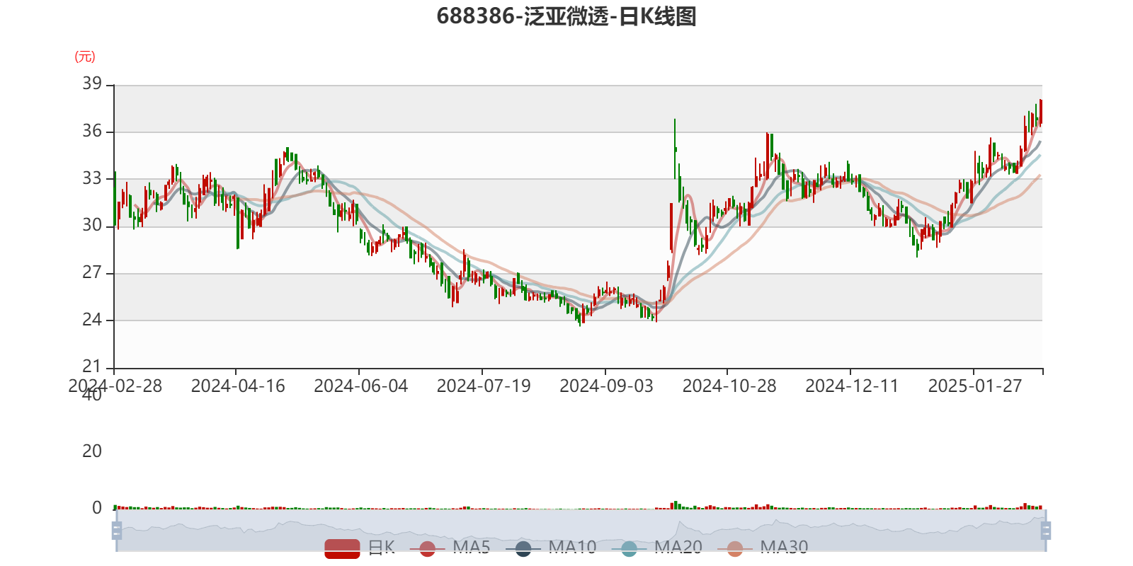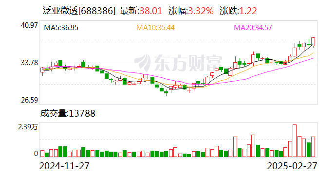 中证智能财讯泛亚微透(688386)2月27日晚间披露2024年业绩快报,公司实现营业收入5.15亿元,同比增长25.39%;归母净利润1.02亿元,同比增长17.93%;扣非净利润9284.99万元,同比增长27.13%;基本每股收益1.46元,加权平均净资产收益率为14.28%。以2月27日收盘价计算,泛亚微透目前市盈率(TTM)约为26.07倍,市净率(LF)约3.72倍,市销率(TTM)约5.61倍。