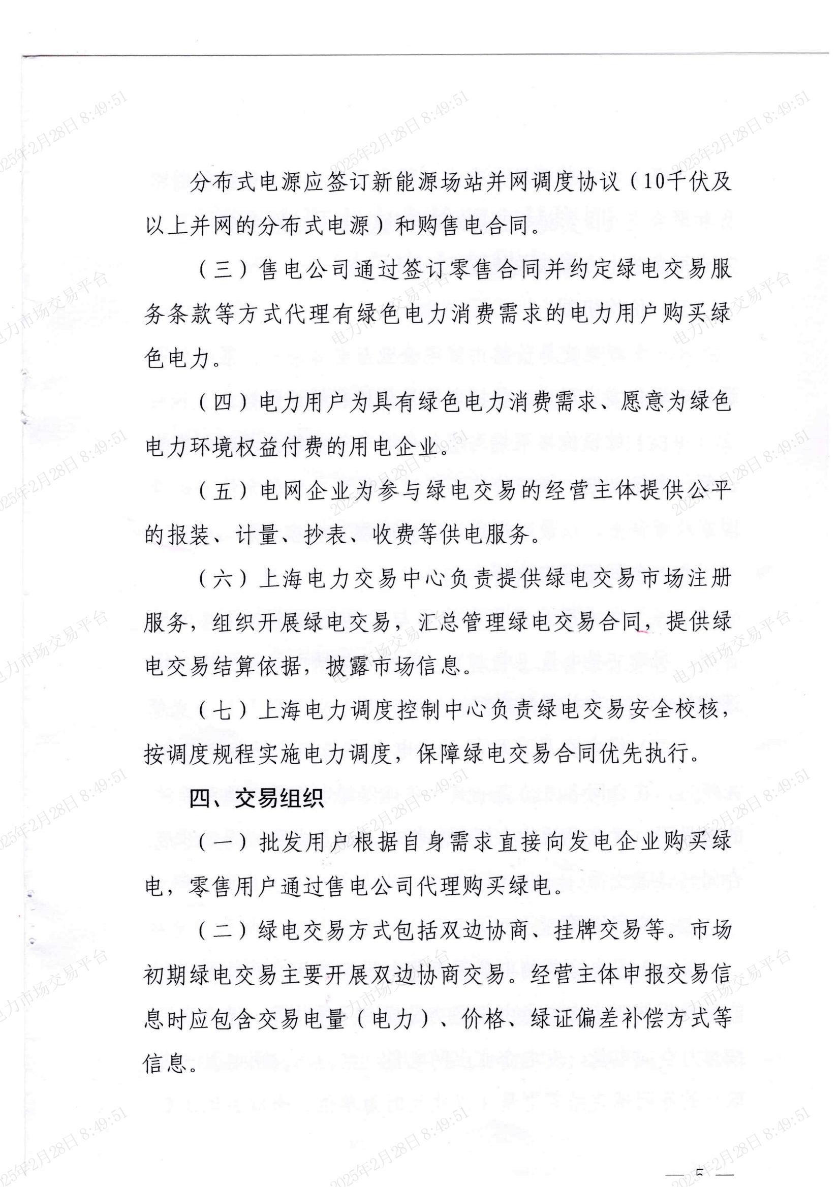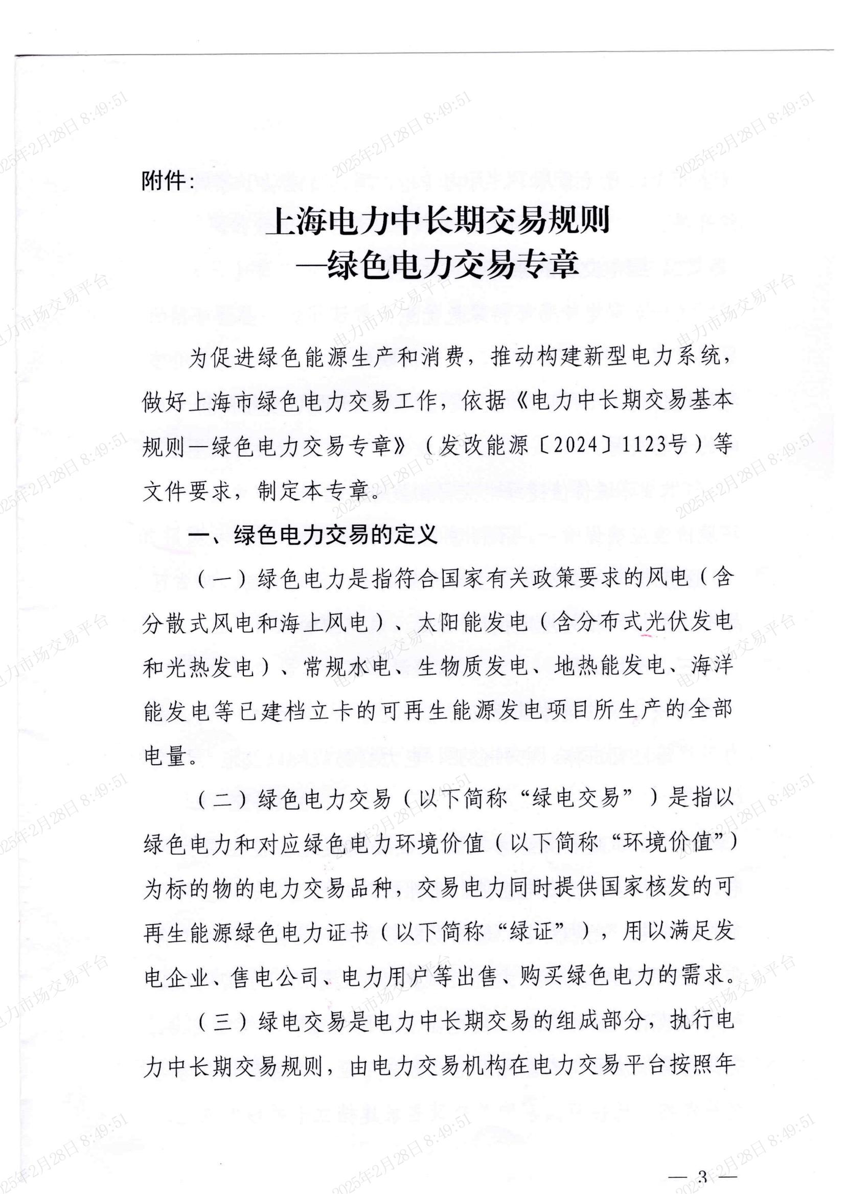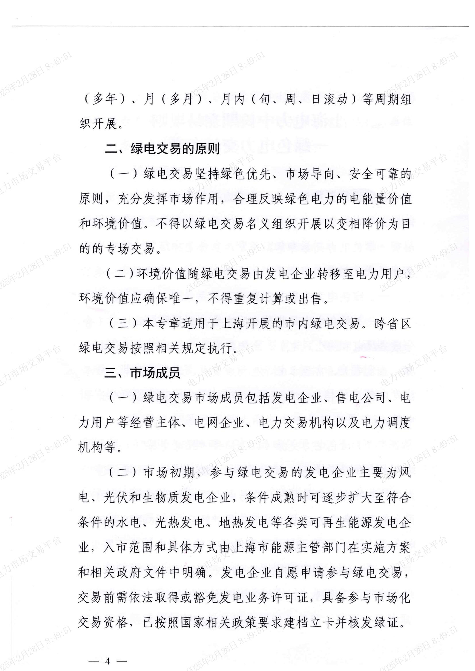 北极星售电网获悉,近日,上海电力交易中心转发国家能源局华东监管局、上海市发展和改革委员会、上海市经济和信息化委员会关于印发《上海电力中长期交易规则-绿色电力交易专章》的通知,其中提到,市场初期,参与绿电交易的发电企业主要为风电、光伏和生物质发电企业,条件成熟时可逐步扩大至符合条件的水电、光热发电、地热发电等各类可再生能源发电企业,入市范围和具体方式由上海市能源主管部门在实施方案和相关政府文件中明确。发电企业自愿申请参与绿电交易,交易前需依法取得或豁免发电业务许可证,具备参与市场化交易资格,已按照国家相关政策要求建档立卡并核发绿证。分布式电源应签订新能源场站并网调度协议(10千伏及以上并网的分布式电源)和购售电合同。