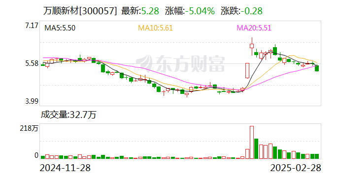 证券时报·数据宝统计显示,万顺新材今日收盘价为5.28元,下跌5.04%,日换手率为4.56%,成交额为1.76亿元,全天主力资金净流出3223.66万元,近5日该股累计下跌6.22%,近5日资金合计净流出6694.06万元。