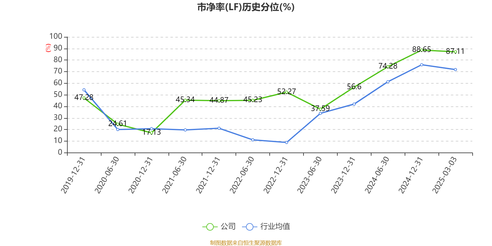 市盈率、市净率为负时,不显示当期分位数,会导致折线图中断。