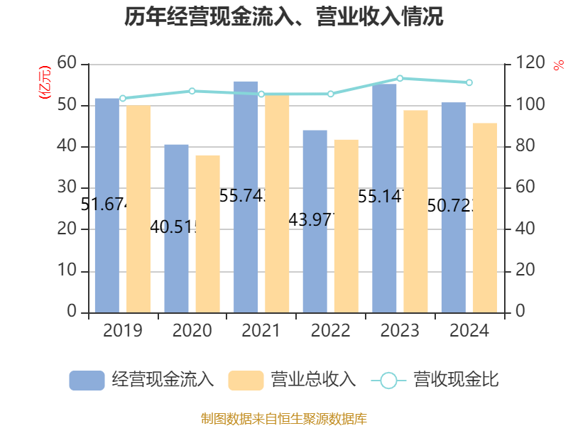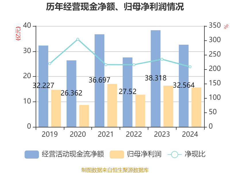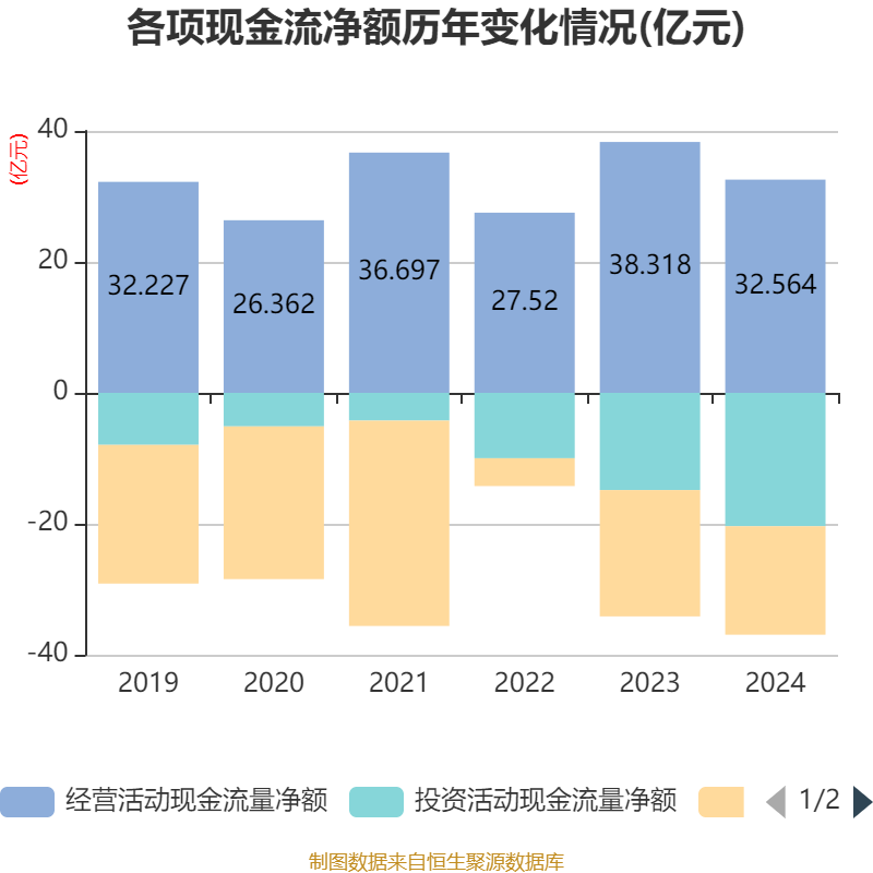 截至2024年,公司经营活动现金流净额为32.56亿元,同比下降15.02%;筹资活动现金流净额-16.56亿元,同比增加2.73亿元;投资活动现金流净额-20.37亿元,上年同期为-14.85亿元。