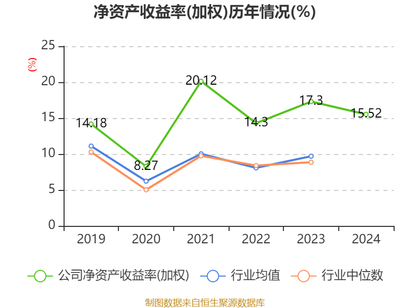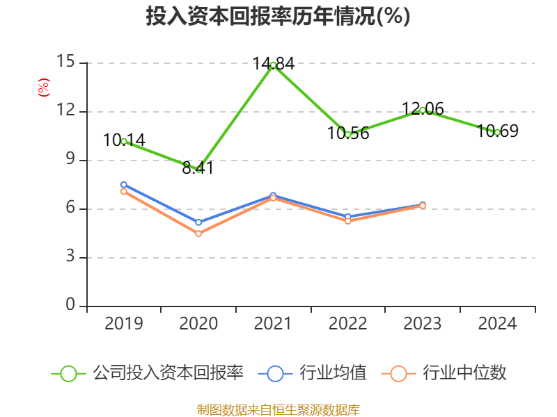 数据显示,2024年公司加权平均净资产收益率为15.52%,较上年同期下降1.78个百分点。公司2024年投入资本回报率为10.69%,较上年同期下降1.37个百分点。