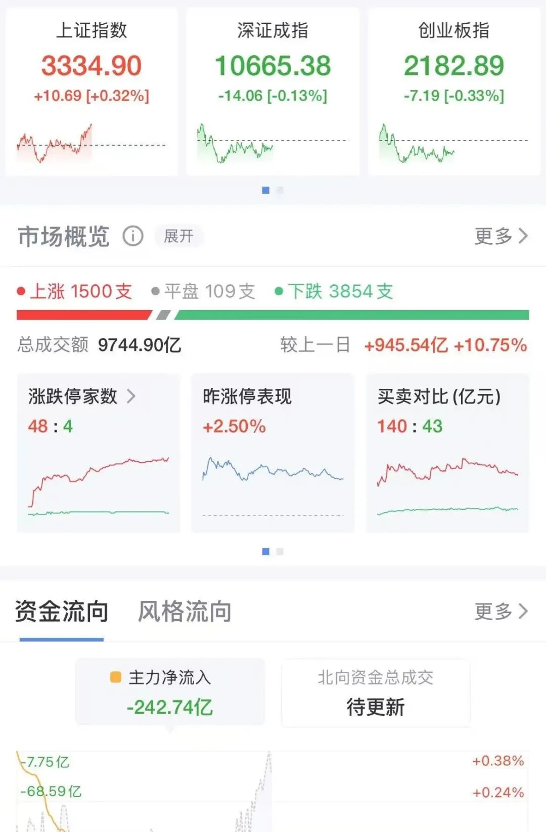 沪深两市半日成交额9420亿,较上个交易日放量892亿。盘面上市场热点较为杂乱,个股跌多涨少,全市场超3800只个股下跌。