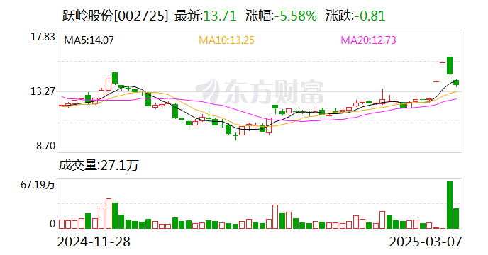 截至3月6日收盘,跃岭股份报收14.52元,换手率29.53%,成交额9.3亿元。此前,北京杰思金材科技有限公司(简称“杰思金材”)与公司控股股东、实际控制人“林氏家族”签署了《股份转让协议》,“林氏家族”合计转让62,875,020股,占上市公司股份总数的24.5606%。转让完成后,杰思金材将成为上市公司第一大股东,公司实际控制人将变更为王冠然。